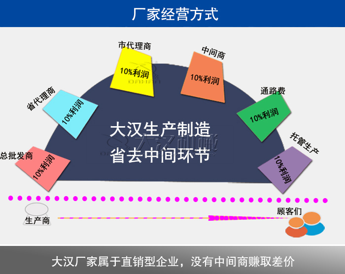 大漢公司位于河南省新鄉(xiāng)市,消費水平低,人工、場地等費用降低,且廠家會從消費者角度考慮,一般設備的報價也不會太高,遠低于北上廣等一線城市。