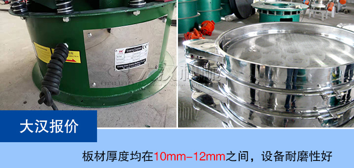 大漢廠家生產的雙層旋振篩采用優質碳鋼或不銹鋼材質,板材厚度均在10mm-12mm之間,設備耐磨性好,使用過程中不會因設備質量問題而造成設備停機問題,可以在很大程度上降低設備的維護費用。