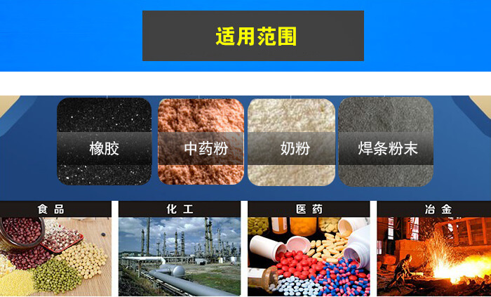 旋振篩廣泛應用于食品、化工、醫藥、冶金等行業,顆粒、粉末、粘液一定范圍內均可篩選, 如:米粉、奶粉、豆漿、油漆、純堿、檸檬粉、橡膠、塑料、中藥粉、電磁材料、金屬粉末、焊條粉末、石英砂等。