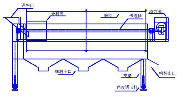 GTS系列滾筒篩是由六角形滾筒、機架、漏斗、減速器、電動機五個部分成,根據實際生產需要可以進行各種安置方案設計。破碎的石料進入滾筒后,靠滾筒旋轉的離心力及跳汰作用來篩分物料。通過不同網目的篩網逐一篩出。不同規格的石料篩出后經漏斗落入皮帶機送至成品料場。一方面隨著滾筒轉動而被篩選,靠滾筒旋轉的離心力及跳汰作用來篩分物料。一方面粒度大的石料沿著滾筒的斜度向前流動,通過不同網目的的篩網逐漸被篩出。不大的石料篩出后落入各自的漏斗,然后由人工運出或自流送往成品堆。
