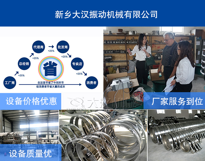 關于設備價格:廠家從用戶角度出發,遵從大多數用戶的購買心理,單臺設備利潤少,價格更平民化、經濟化,大漢料倉旋振篩廠家直銷,價格更便宜。